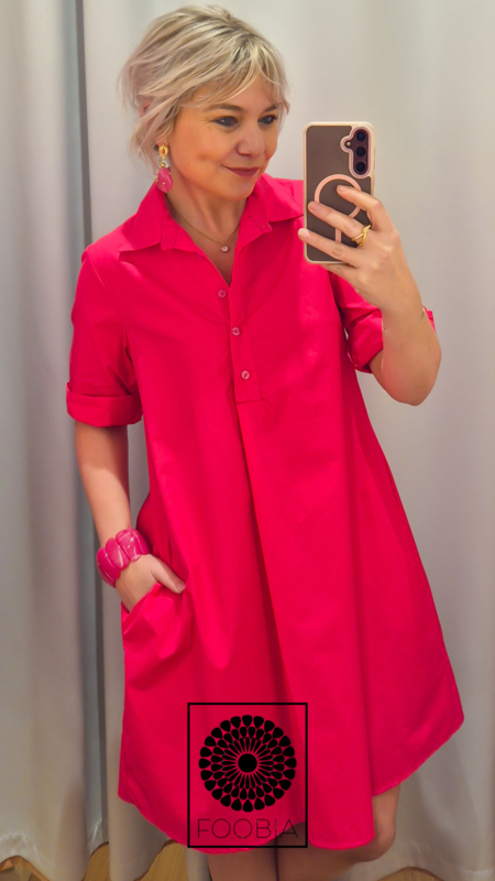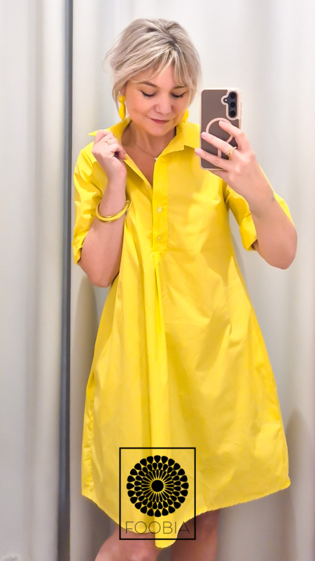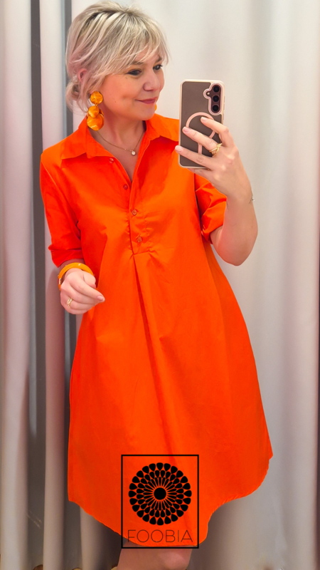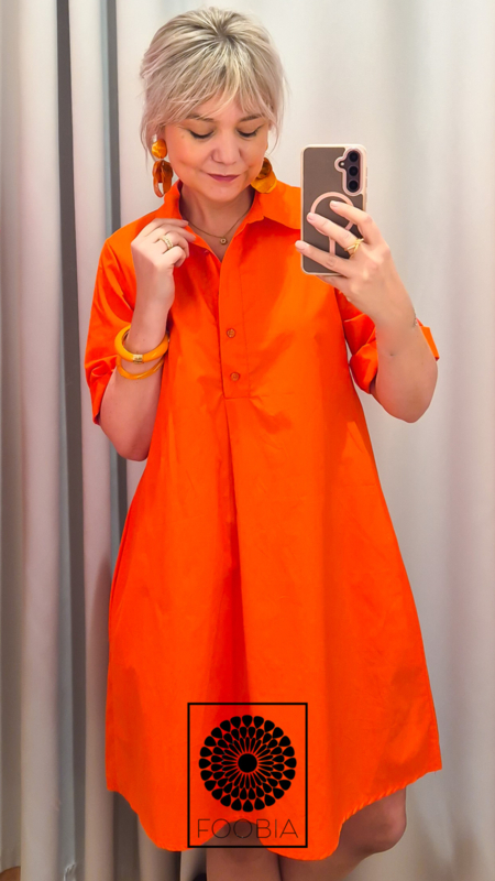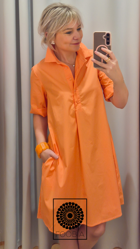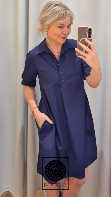 Deze katoenen A-lijn jurk heeft een tijdloze uitstraling en een comfortabele pasvorm. De jurk valt tot net boven de knie. In de zijnaden zitten verborgen zakken, waardoor de jurk zowel stijlvol als praktisch is. Gemaakt van ademend katoen.