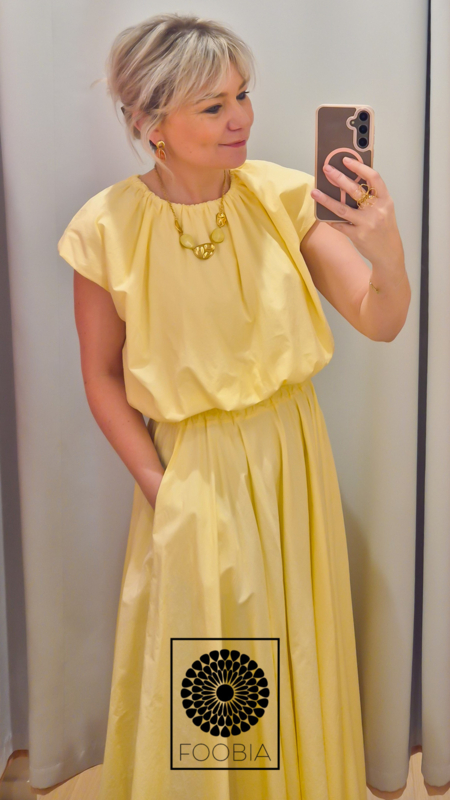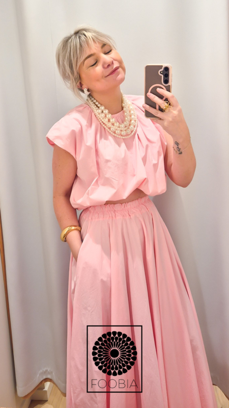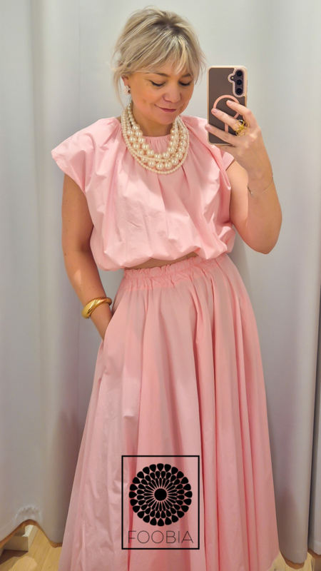 Tweedelige set; top en rok.