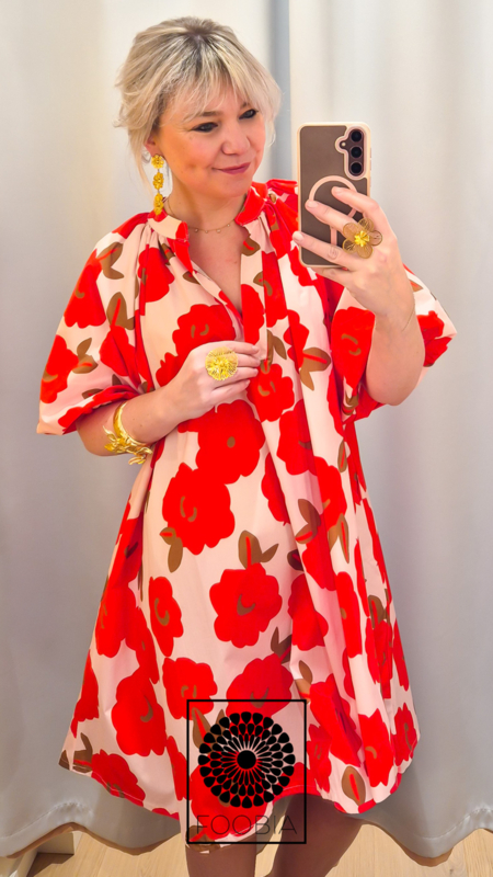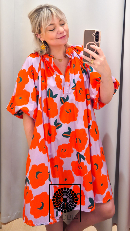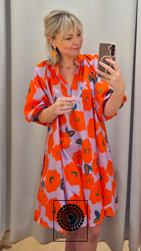 De speelse bloemenprint geeft het kleedje een frisse en vrouwelijke uitstraling, terwijl de praktische zijzakjes zorgen voor extra gemak.